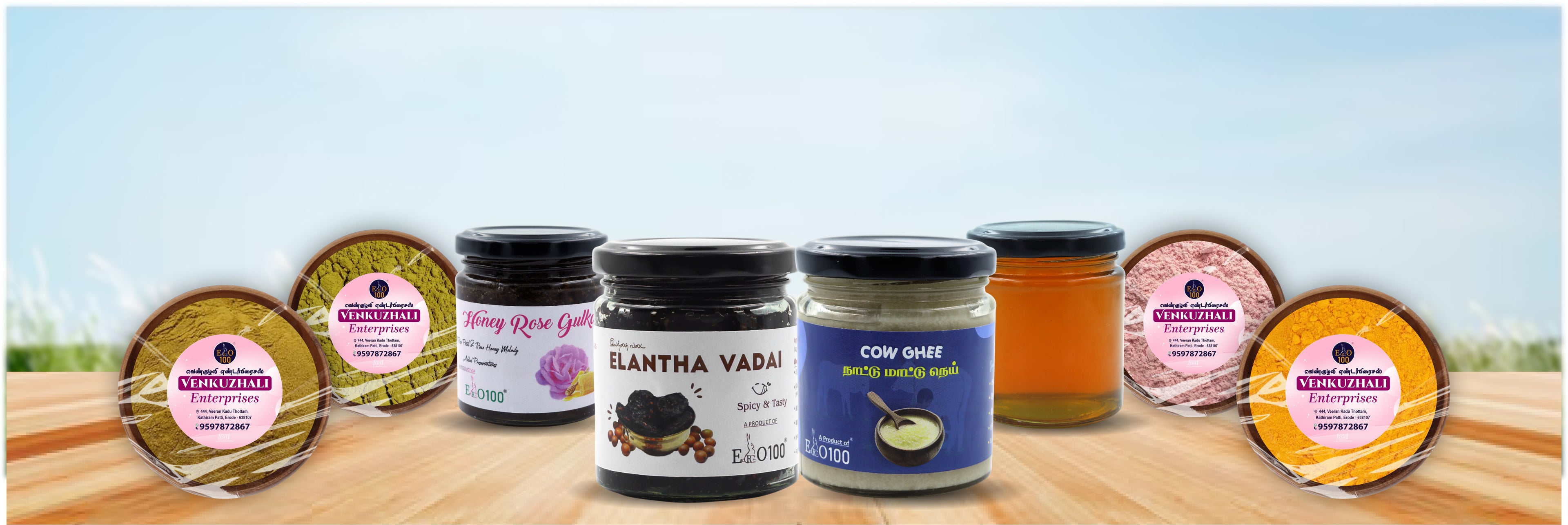 At ERO100 by Venkuzhali Enterprises, we bring you the finest, traditionally crafted herbal and natural products designed to nurture your body, mind, and soul. Rooted in the heart of Erode, Tamil Nadu, our mission is to deliver the goodness of nature in its purest form.